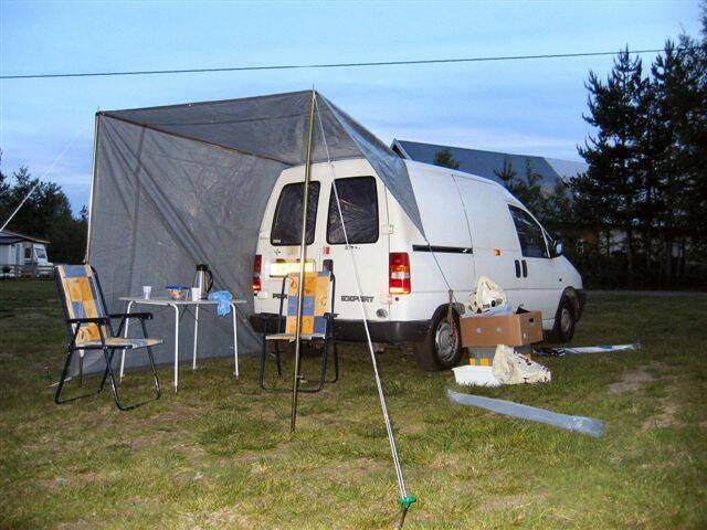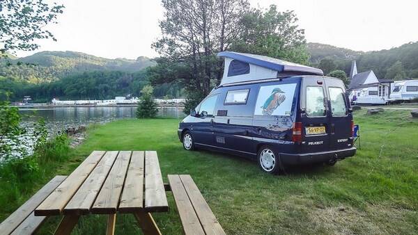 Dat werd een Peugeot Expert Buscamper die ik zag staan. Een blauwe want ik hou er niet van om met zo`n witte koelkast of diepvriezer te rijden. Groot genoeg voor twee personen.