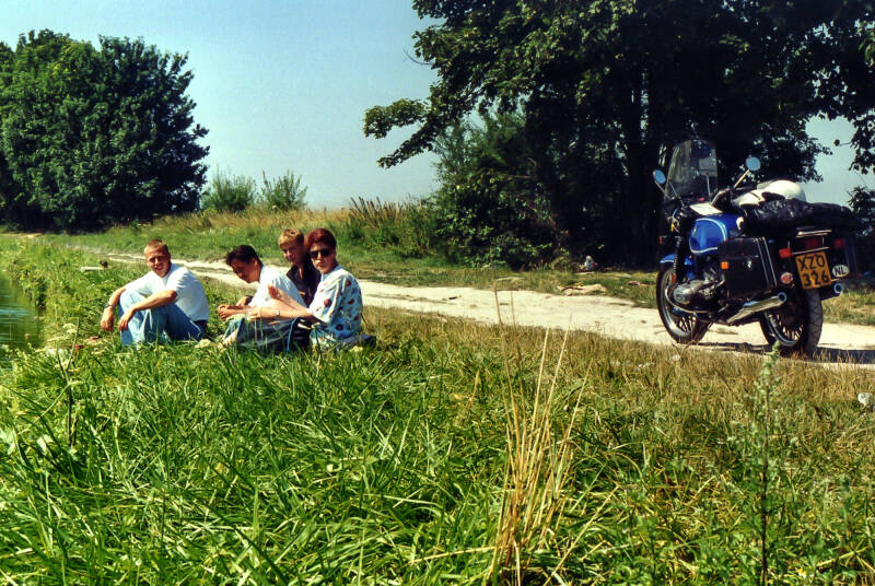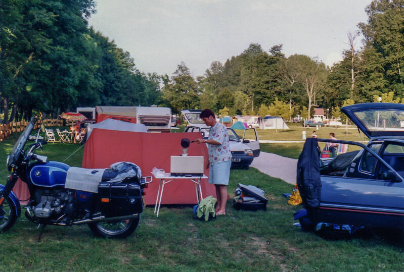 1991 Met BMW R75/7 en de Peugenot 205. Bij toerbeurt eentje achterop. Onderweg kamperend.