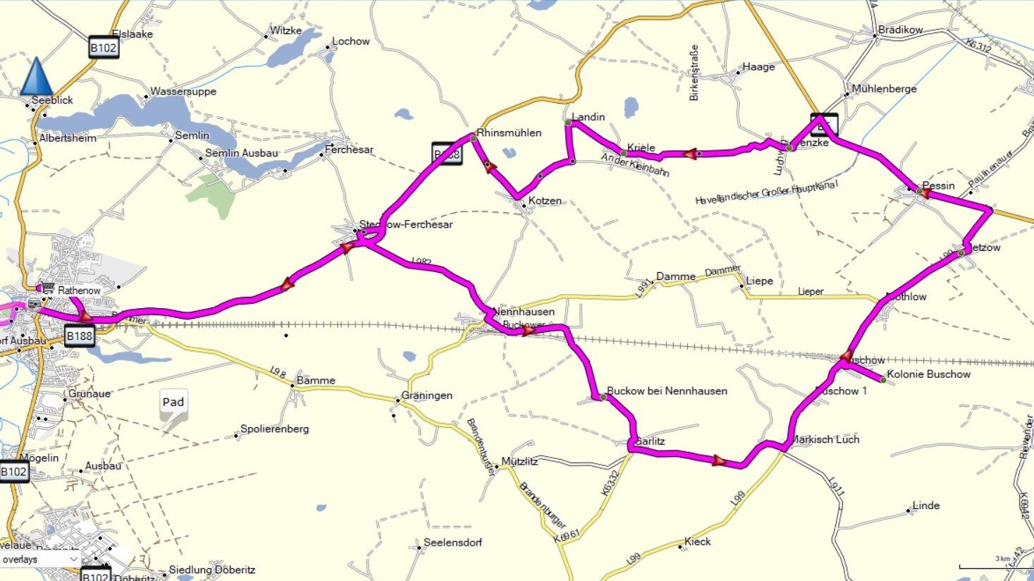 Twee Kraanvogels zijn ook mijn deel evenals een stuk of vier Ausfahrten die gelukkig de meine niet zijn. Even na drie uur kom ik aan in Rathenow. Het tanken levert een verbruik op van 1 : 13,59 dat is zoiets als een record. Het is een typisch Oost-Duits dorp/stadje. Niet erg opwindend hoewel de betonnen woondozen tegenwoordig voorzien zijn van een kleurtje. Er is hier ook veel water in de buurt, maar ik zie er vrijwel geen watervogels op of in. Wel is er wat rumoer van een kluit jeugd waarvoor ook de Polizei nog verschijnt. Maar de avond en nacht zijn rustig. Goed slapen is een must want ik ben aardig stuk van de laatste dagen.