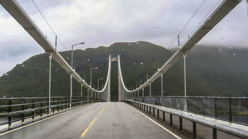 Dat plan wordt in belangrijke mate beïnvloed door het weer. Het is nog even duister en nat als de afgelopen twee dagen. Ik laat het oorspronkelijke idee om naar het vogeleiland Runde te gaan voor wat het is en we besluiten om richting Trollstigveien te gaan. De E-39 is een lastige weg waar je regelmatig niet harder kunt rijden dan 60 á 70 km/u.