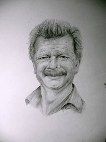 Wie hem heeft getekend weet ik niet maar de tekening is zeer treffend! Altijd vriendelijk en altijd een mooi welkom. Ook al is het nog zo druk lijkt hij altijd de rust zelve.In de loop der jaren heb ik hem goed leren kennen en dan laat hij wel eens weten dat het hem wel eens te druk wordt. Een gouwe kerel wat mij betreft.