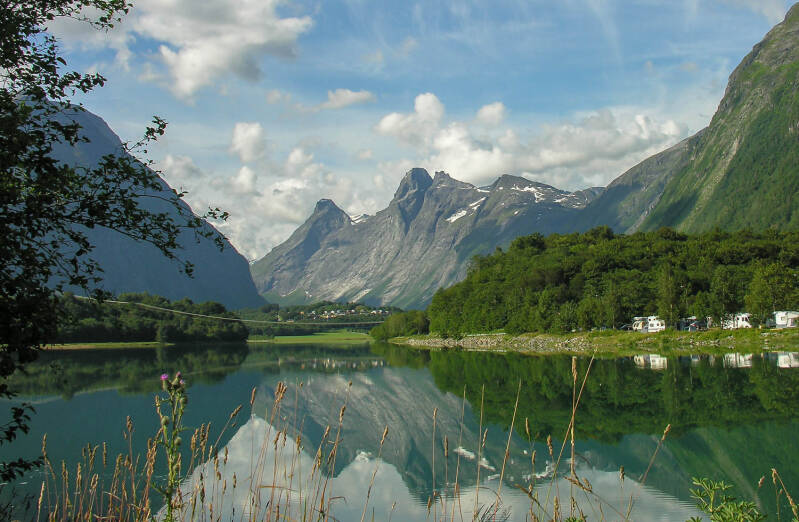 Na Stavanger vervolgen wij onze campertocht via allerlei bekende en onbekende plekken zoals weergegeven in de andere Noorwegenpagina`s. Bij en in Bergen wordt het natte karakter meer dan bevestigd. De mensen zijn gewend aan 5 van de 7 dagen regen. Wij nemen na een kort bezoek mede aan het Aquarium de vlucht en hoe verder van Bergen, hoe droger het wordt.