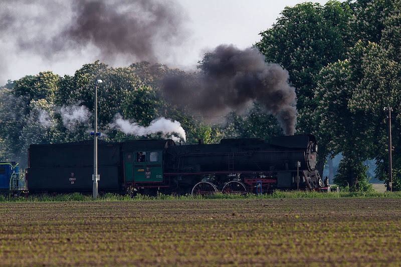 Mijn eerste kennismaking met het Poolse land voelt meteen goed, zeker na een fraaie zonsopkomst de volgende morgen rond een uur of vier. Om kwart voor vijf rijd ik het dorp uit op weg naar Starachowice op plm.1350 km. van Zwijndrecht. Wat opvalt, is dat er om een uur of vijf al volop mensen op pad zijn. Te voet, per fiets of auto, of wachtend op een collega om mee te rijden. De gemakswinkels, zo noem ik die maar, zijn al open voor de krant, de koffie en een broodje. Een vroeg volkje, of zijn de afstanden naar de werkplek zo groot in dit grote land? Misschien kom ik daar nog achter tijdens deze trip. In de vroege morgen word ik opgeschrikt door een stoomfluit rechts van mij. Het is ergens vóór Mostki als ik op een spoorwegovergang af rijd. In een flits kijk ik naar rechts en zie een stoomtrein aankomen. Als de machinist niet aan de stoomfluit had getrokken, zou ik waarschijnlijk tegen de trein zijn gereden. Goed opgelet van die man. Maar een stóómtrein in 2013? Ja, en hij rijdt zo te zien ook nog gewoon als stoptrein over deze lijn.