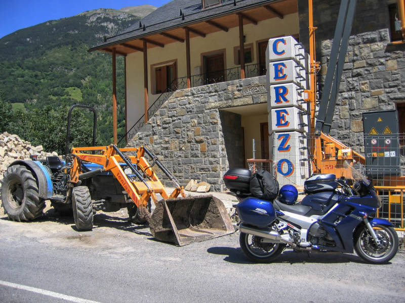 Allez, om even na achten gaf ik de FJR weer de sporen voor de laatste etappe naar San Juan. Na een kwartiertje stopte ik voor een krwassantje met sjokolade en een gewone krwassant die ik wegspoelde met de eerste echte en lekkere espresso’s. Het was nogal bewolkt en ik vreesde eigenlijk regen. Dat kwam er ook wel maar niet in de vorm die ik dacht. Richting Andorra sturend, klom ik steeds hoger en belandde uiteindelijk in de wolken. Dikke mist dus en natuurlijk ook regen vanwege de hoge luchtvochtigheid zal ik maar zeggen. Voor de veiligheid liet ik de Pas de la Casa naar Andorra letterlijk links liggen en nam de tunnel D' Envalira en ja hoor, na de tunnel was het weer helder en droog. In Andorra moest ik eerst even tanken en dat is lachen daar. Een hele liter voor het weggevertje van 1,019 neuroses. Verder heb ik daar nergens naar gekeken, dus ook niets gekocht en gaandeweg bleek dat je behoorlijk wordt vergast in het centrum. Bah bah, wat een stank. Daarom maar de pas, de Carratera del Coll D'Ordino, genomen die mij weer Andorra uitbracht.