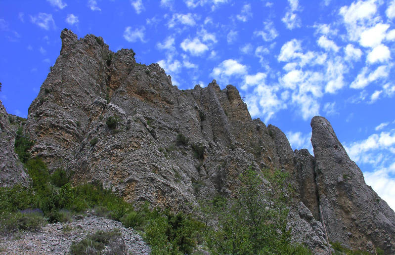 Over de route verder niets dan goeds met een geweldig mooie natuur. Het was eigenlijk een hemelse helletocht. Onderweg kocht ik een drietal flesjes water die ik, wanneer nodig, bijna zonder slikken even leeg liet lopen want het zonnetje bracht de lucht tot een graad of dertig. De hele route bestaat uit diverse gedeeltes met een eigen naam. Route de Corbières, Route de Vin, Route de Cathar en route de Cotes de Roussillon. In de laatste kwam ik door de Gorges des Canalettes en de Gorge de Caranca.