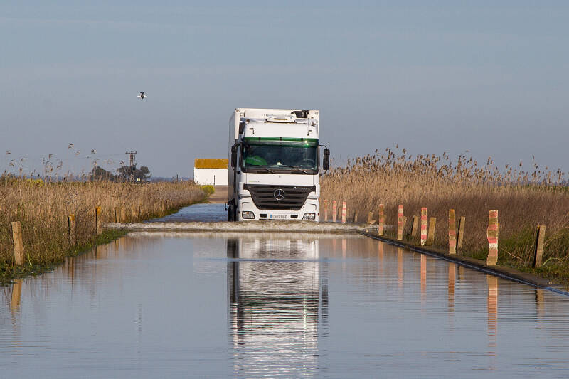 Die Cota Dońana is in vogeltechnisch opzicht wel hét hoogtepunt van deze reis samen met het stadje El Rocio befaamd om zijn Romeria. Nu is het er vrij stil want de broederschappen zijn nog thuis en hun onderkomens hier leeg. Behoudens een flinke bak regen op een middag is het hier steeds aardig weer en laten de vogels zich redelijk fotograferen. Die regen zorgde voor sterk overstromende rivieren. De Rio de Guadalmar is normaal gesproken één meter breed maar nu op de vlakkere delen een paar honderd meter zodat je over de brug rijdend door het water rijdt. Ook hiervan laten de foto`s zien wat de soortenrijkdom hier is. Hoogtepunt was wel de opname van een Zwarte Ooievaar die zich pas in de laatste honderd meter van mijn laatste dag hier liet zien.