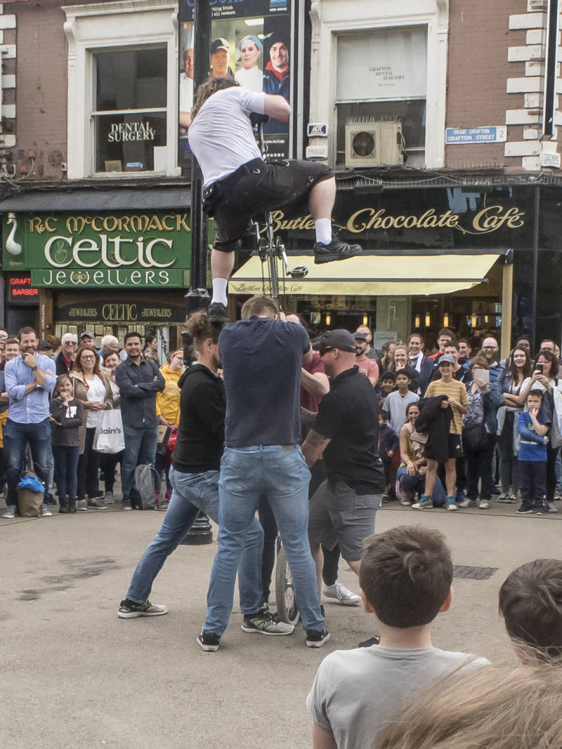We gaan naar Dublin met de trein. Vrij luxe en niet duur. We drentelen door blijkbaar het duurste deel van het centrum met als “beloning” een ijsje voor 6,5 neuroses per stuk. Goed en lekker maar knetterduur. Straatartiesten volop maar een beeldengroep van drie totaal zwart uitgedoste “heren” verdwijnt plotseling met gezwinde spoed. Mogelijk “Travellers” of Zigeuners of Roma`s, die de politie vrezen. Malika koopt nog twee stukjes kledij en we krijgen nog een bui op onze kop.
