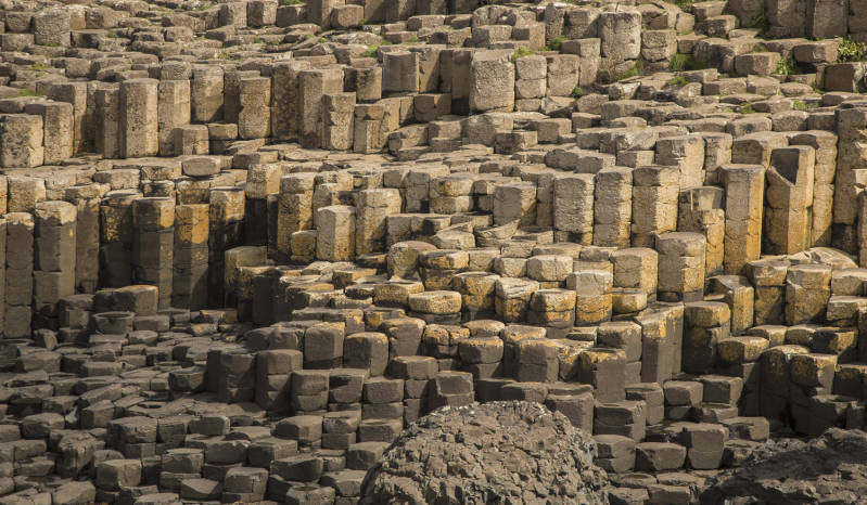 Rond half twaalf werd het droog na een stormachtige nacht met veel regen die door de ruiten naar binnen leek te willen. Niet gelukt. Dan breken de wolken en besluiten we het te wagen en pakken de bus naar de Giant Causeway. Een pittige wandeling volgt en we verbazen ons over het feit dat allerlei hansworsten (Homo Narcissos???) op die stenen gefotografeerd willen worden.