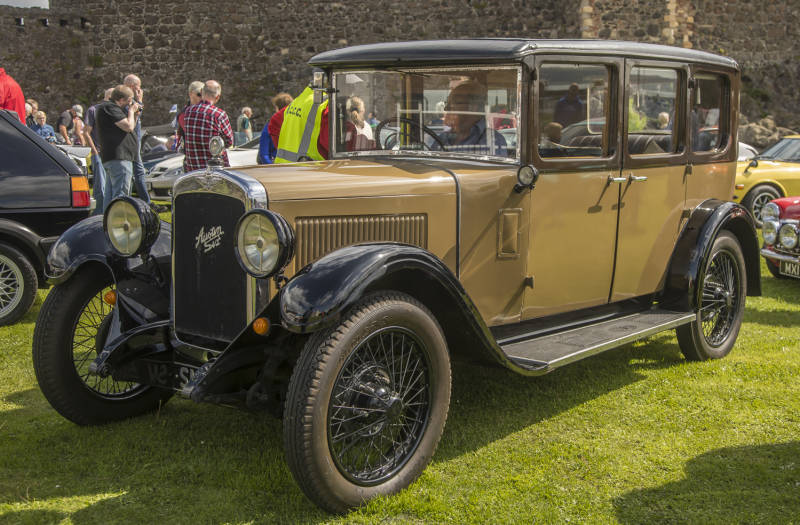 Een oud kasteel tussen oude auto`s die toen nog echte neuzen hadden.